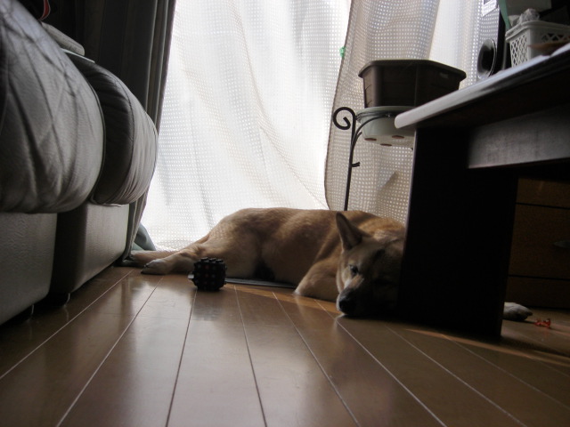 部屋の中では丸まって尻尾で鼻を隠してますが・・・