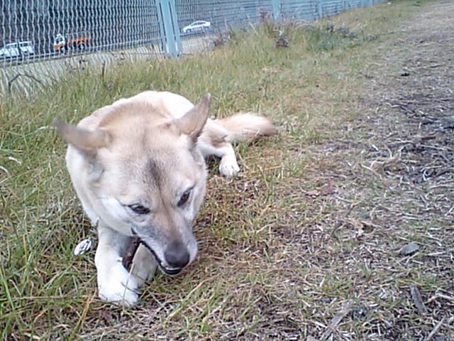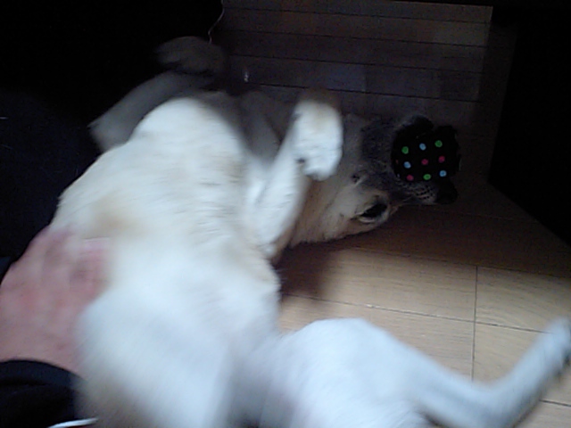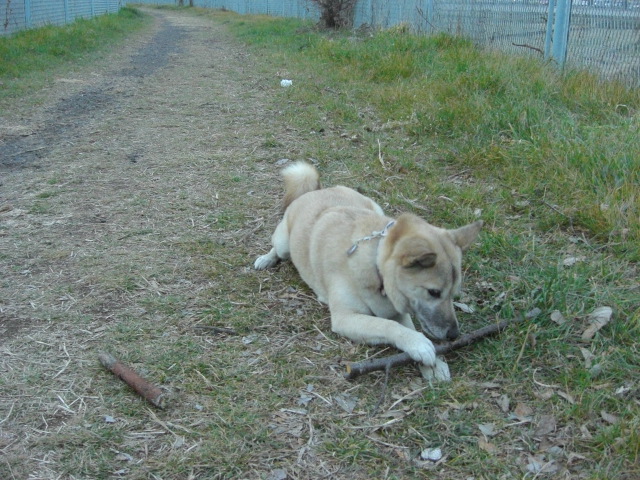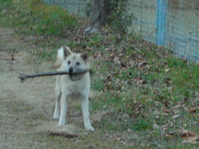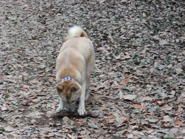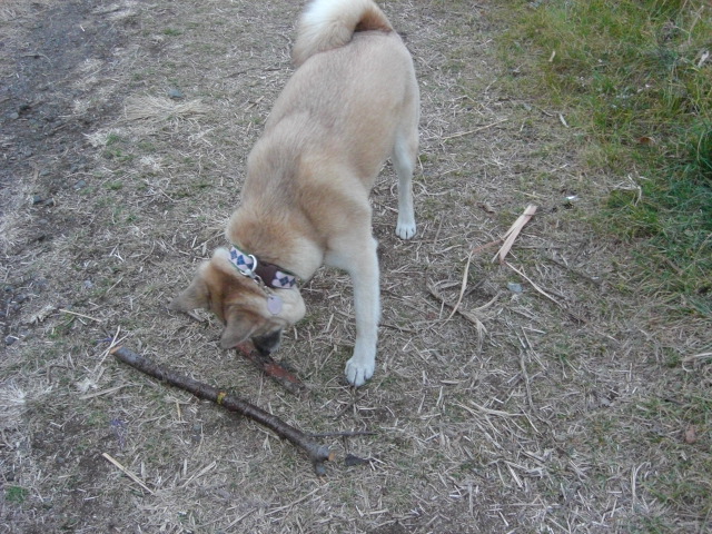 どうやら石で遊びたいらしいのですが、すでに他の石を咥えてるんですよ、実は。