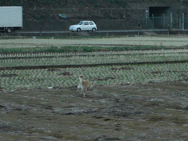という訳でこれと言って川沿いはネタがなく、いつもの畑に着きました。