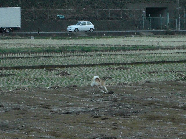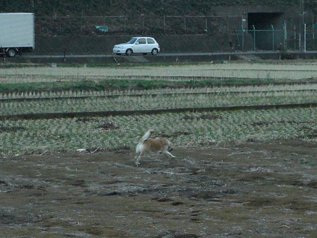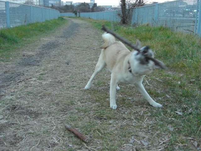で、飼い主が寒さに凍えて散歩してる最中このお方は相変わらず元気ですよ。