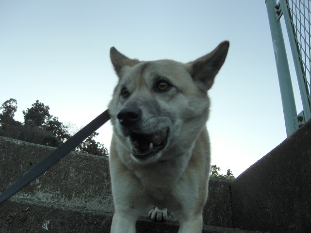 んでもってワタシは写真を撮るため&腰イタのためにほど立ち止まっていたら寒さが倍増してきたので「帰るよ~!」と声掛けたら戻ってきたんだけど、こんな顔。