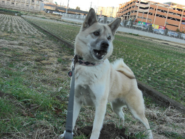 幸い畑には誰も居なかったので不自然な歩き方のまま散歩続行。(あと少しで家だったので)