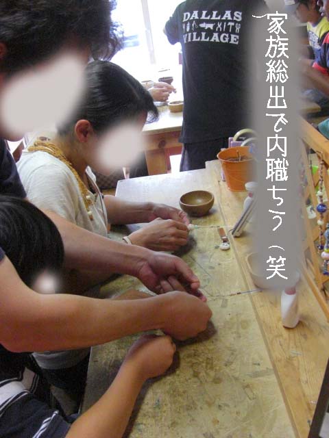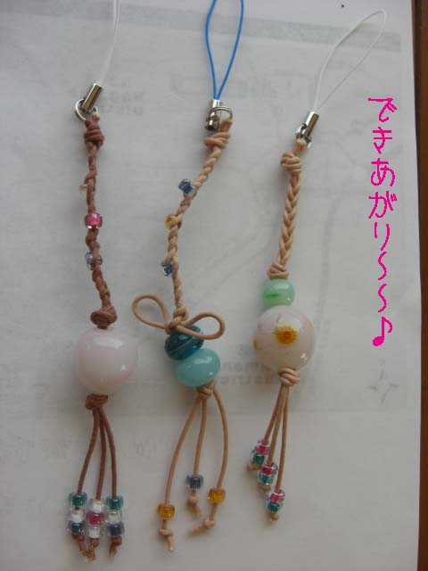 まぁ、そんなこんなで作業15分・とんぼ玉を冷やすのに30分、やっと出来上がったとんぼ玉をストラップにするために工作の始まり~~♪