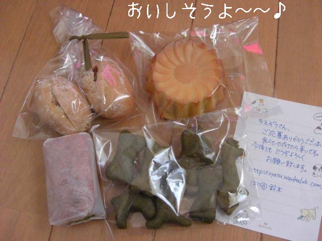 犬の手作りケーキレシピ 月子カフェというサイトで毎月おやつ試食会レポーターわんちゃんというのをしているのですが、そこにこの間応募したら見事当選したのでおいちそうなおやつが届きました。
