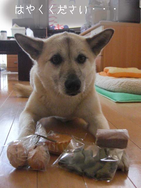 レポーターわんちゃんなのでおやつと一緒に写っている写真と食べている様子を撮ったものを管理人さんに送るのですが、まぁそんなのお安い御用よね(笑)