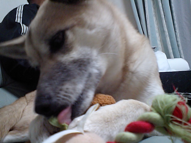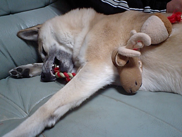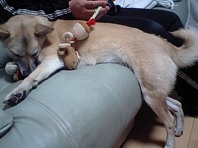 じみぃ~にロープのおもちゃをガシガシしてます。
