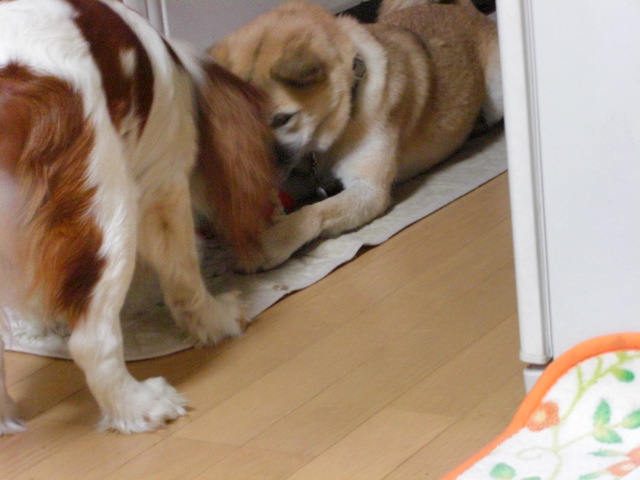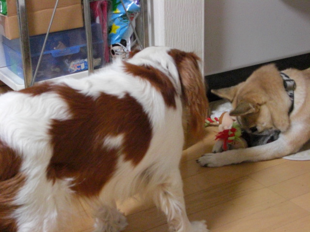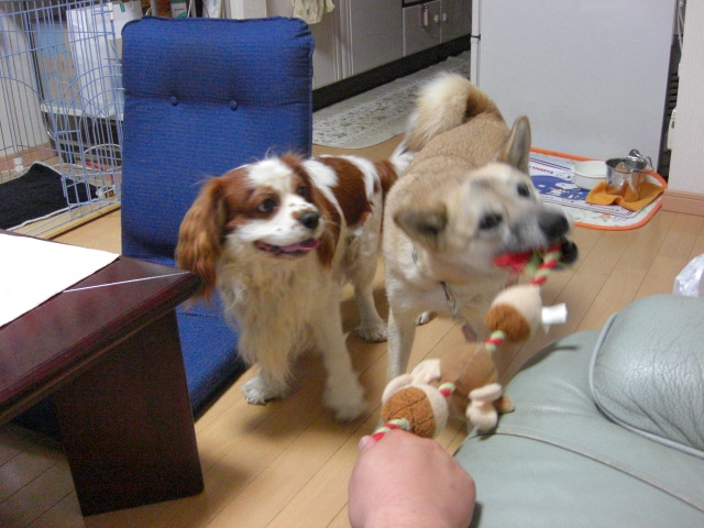 とこのあとガウガウし始めたのでオモチャは取り上げて2匹ともワタシから雷が落ちたのは言うまでもない(笑)