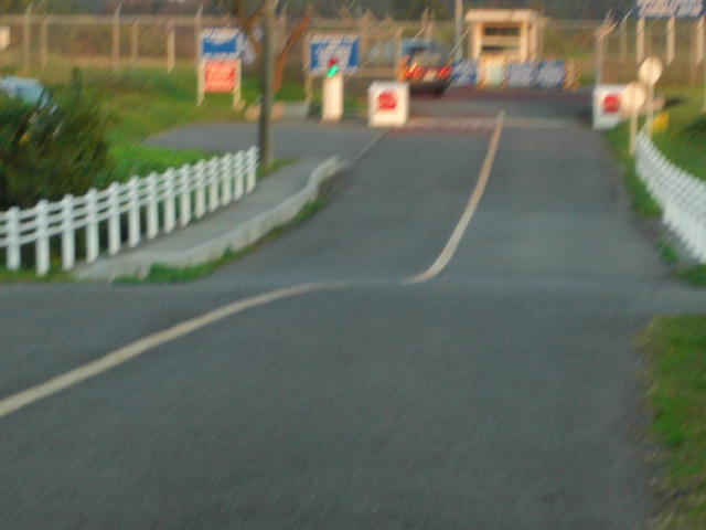 歩きながら撮ったのでブレてますが、米基地の入り口です。
