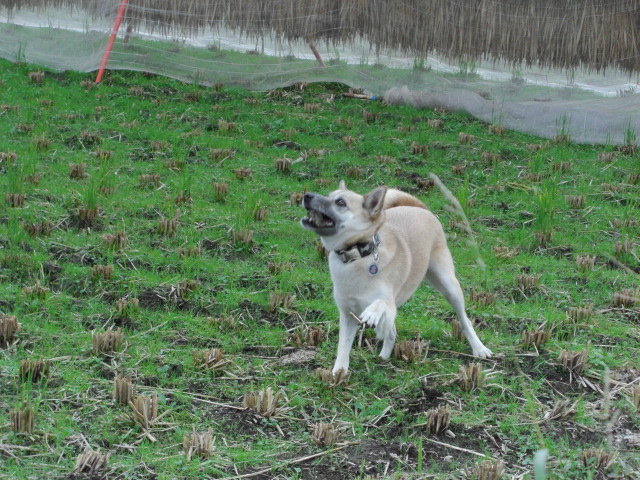 ナイスキャッチは撮れなかったけどボールをキャッチしてオヤツ欲しさに必死なそら。