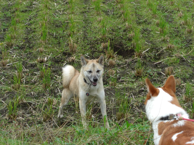 さくらちゃんのママさんはそらのことを最初「柴犬」だと思っていたらしくちょっと警戒していました。