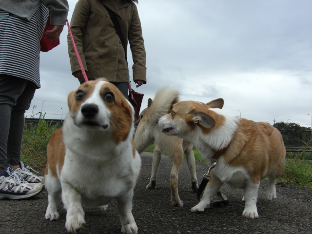 本当は広場でボール投げでもしたかったんだけど先客が居ては仕方がないと思い素通りしようと思ったらお互いのワンコが近づいた。