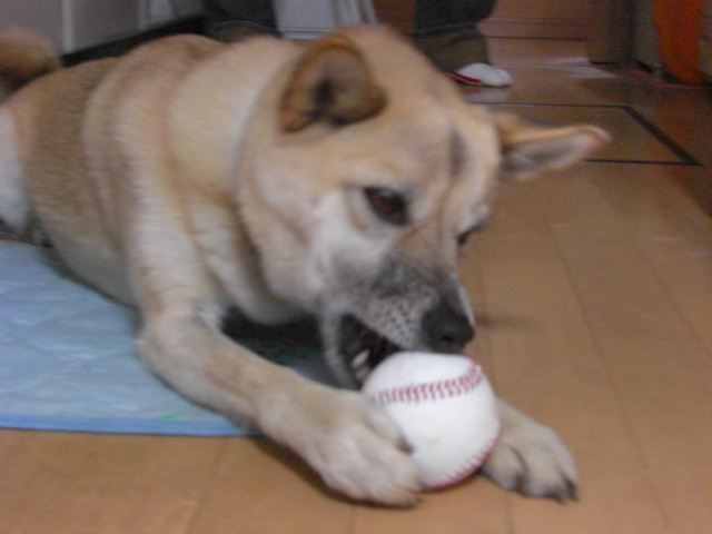 勿論、このボールも咥えて持ち帰ったのですが、家に着いてからもスゴイ勢いで遊んでました。