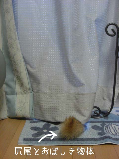 はい、カーテンから何かが生えてます(笑)