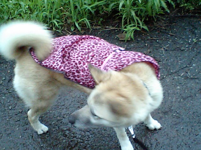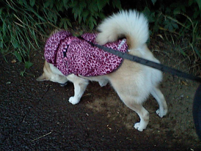 が降ってる割には素直に外に出てお互いで綱引きすることもなくアッサリいつものお散歩コースへ。