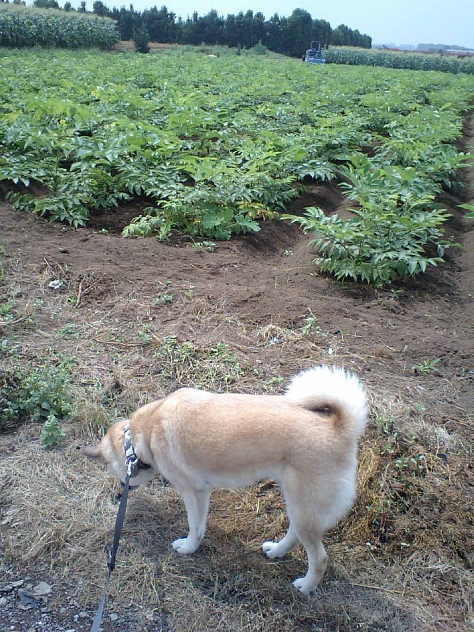 畑を通って公園へ行き誰も居なかったのでノーリード。