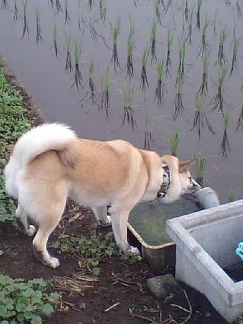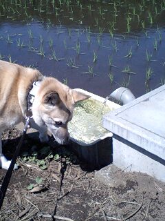 走りこみが終わってからこの時期は決まって田んぼの水を飲みのどを潤すそら。